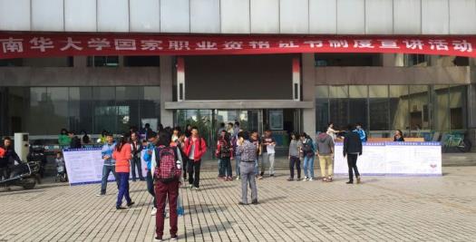 为大力推行国家职业资格证书制度,加快技能人才队伍建设,更好地服务我校学生就业和经济社会发展,贯彻执行湖南省人力资源和社会保障厅职业技能鉴定中心下发的《关于开展2015年国家职业资格证书制度宣讲活动的通知》(湘人社鉴函〔2015〕5号)文件,2015年10月11日上午继续教育学院在乐鱼平台第1教学楼前坪举办了国家职业资格证书制度宣讲活动。活动通过在校园布置宣传横幅、摆放展架、发放相关宣传资料、现场问卷调查方式进行,让学生更多的了解了国家职业资格制度。