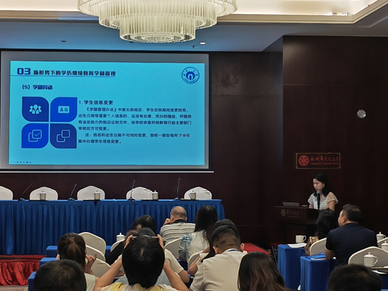 工作会议之后,由继续教育学院赵桂芝副院长主持,会议进行了三个业务专题培训。继续教育学院招生与教务办公室主任汤晓兰、校外教学点管理办公室主任彭金生和湖南世纪超星公司刘人洋分别做了《新形势下乐鱼平台校外教学点教学与学籍管理》《新时代下乐鱼平台教学点设置与管理》;《乐鱼平台校外教学信息化管理系统操作》专题培训。